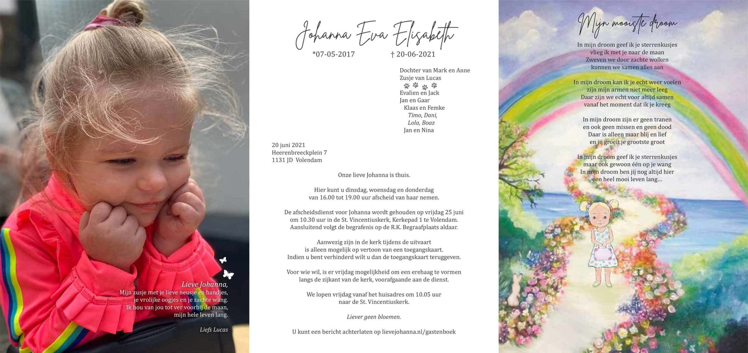 Johanna: Ons prachtige meisje, voor altijd 5 jaar